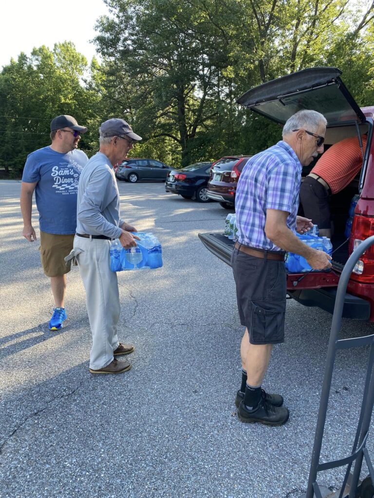 Mike Moseley, a member of St. Mark’s, Newport, delivered a barn fan, and St. Mark’s and St James, Essex Junction needed a truck and three cars to transport all the water they collected for relief locations in Montpelier and Barre. Bishop Shannon and her family brought several more cases of water and snacks.