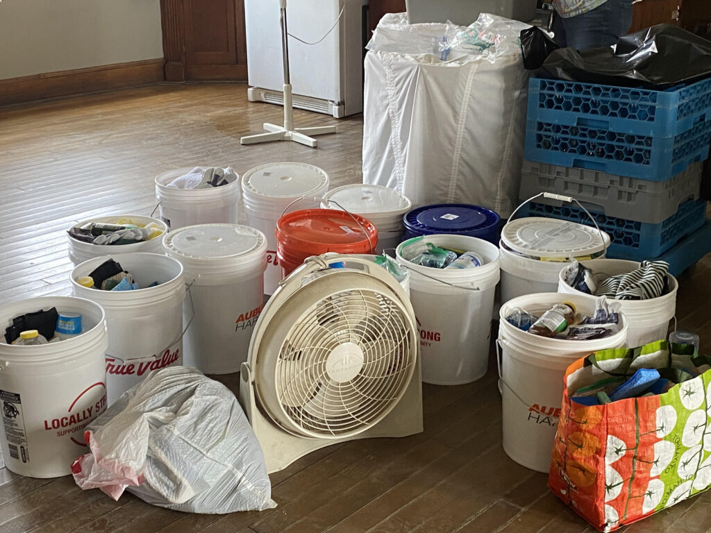 On July 16, the constellation congregations of St. Paul’s, Vergennes and All Saints, South Burlington assembled two car loads of buckets of cleaning supplies and packets of personal hygiene materials for delivery to Christ Church, Montpelier. From there, the supplies were distributed to people in need in Montpelier and Barre. Some of the hygiene kits were taken to the disaster shelter at the Barre Auditorium.