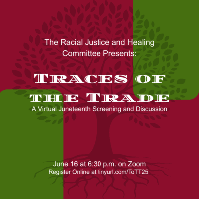On June 16 at 6:30 p.m., join the Racial Justice and Healing Committee for a virtual screening of Traces of the Trade: A Story from the Deep North. Following the screening, participants will be broken up into small groups for discussion and reflection. This event is being held in honor of Juneteenth.